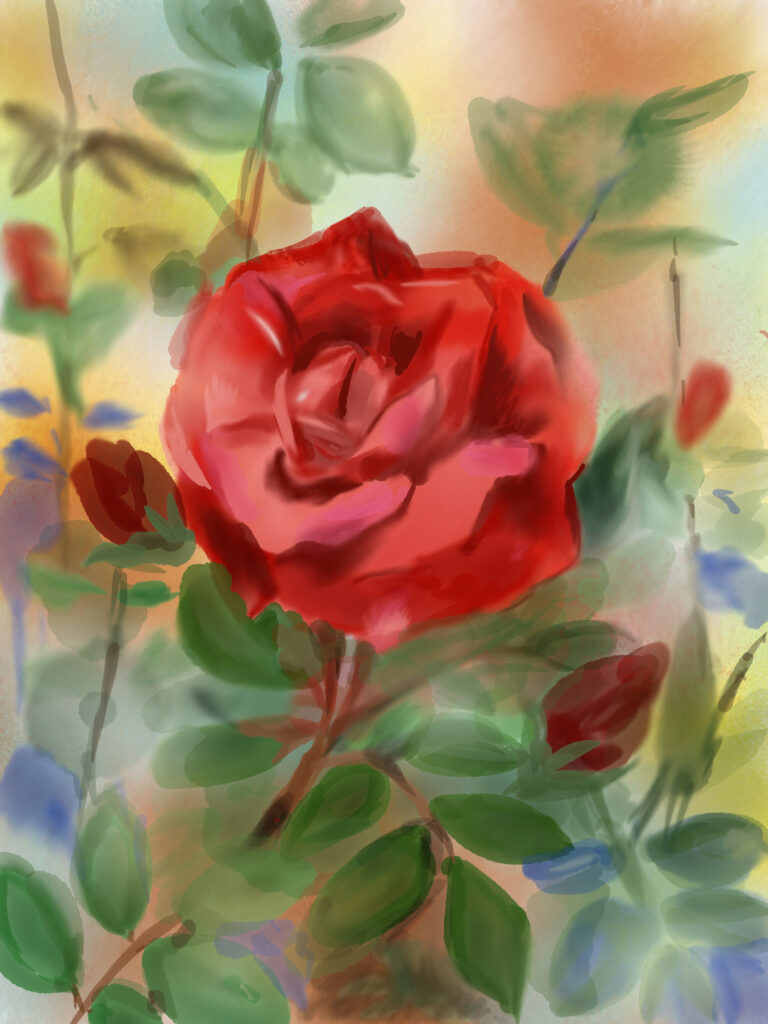 大きく真っ赤な堂々としたこの薔薇は、描くのが非常に難しいです。 -